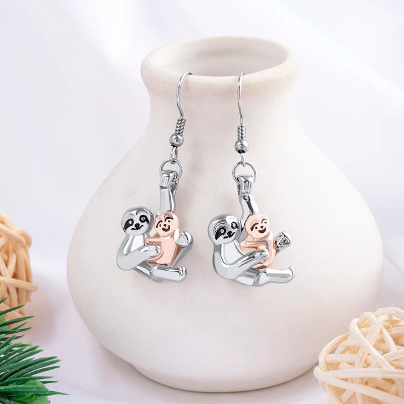 Two-Tone Sloth Mom and Baby Pendant & Earrings Set